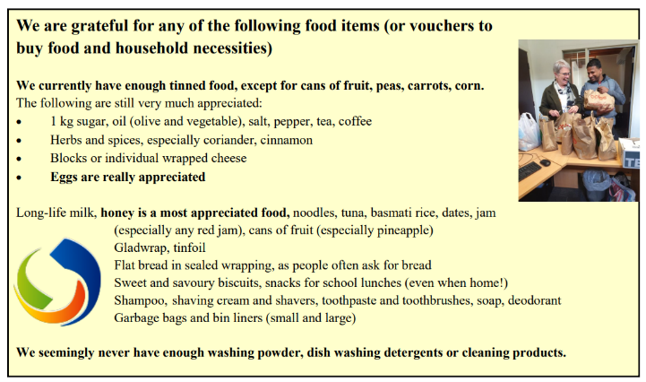 Year 11: Brigidine Asylum Seekers Project (BASP) – rice, oil, sugar (1kg), tea, coffee, salt, pepper