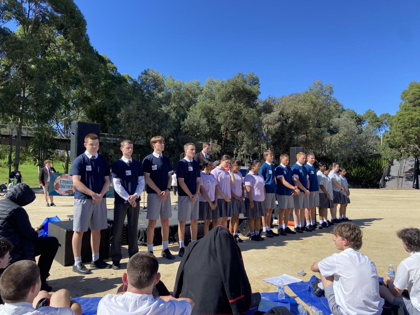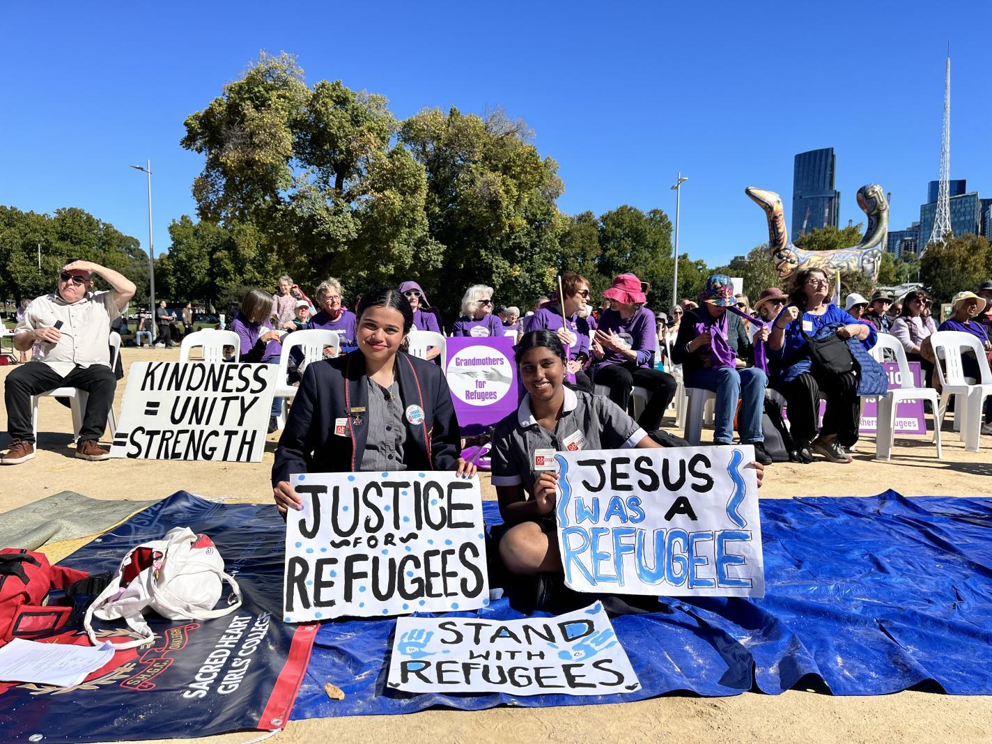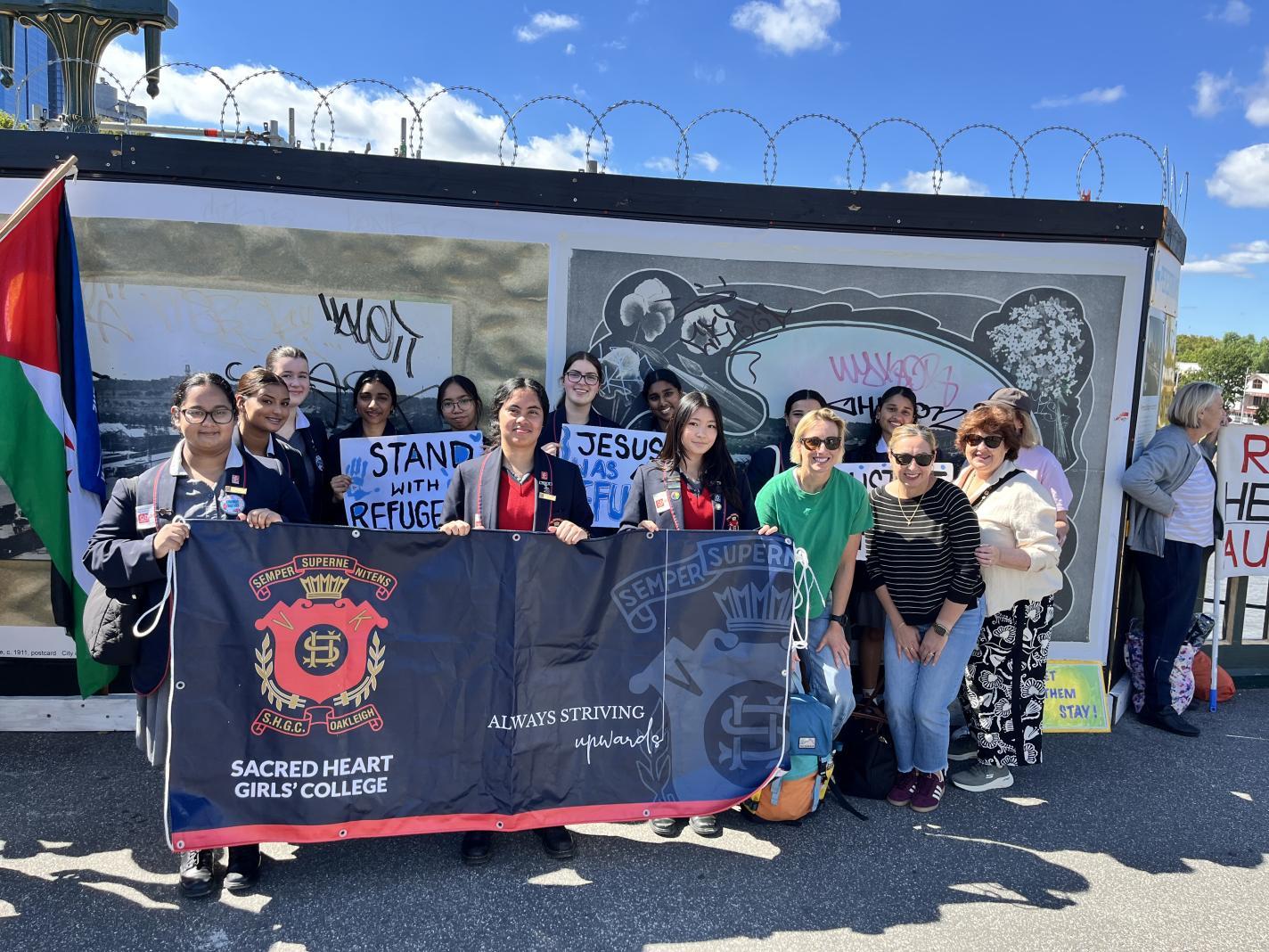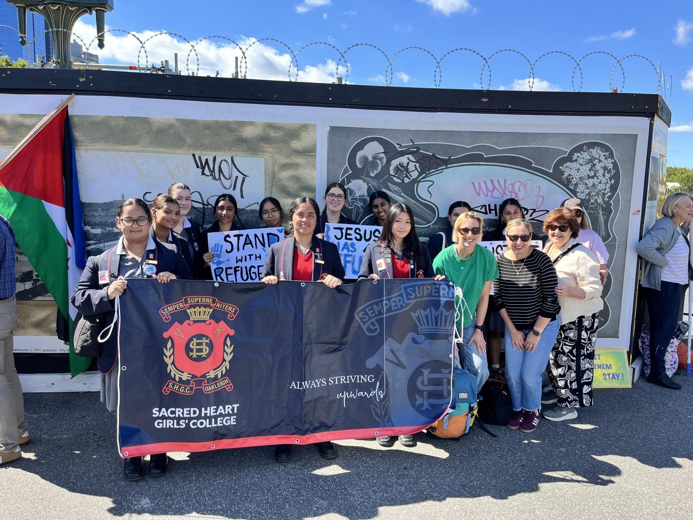 Deputy College Captain - Social Justice; Solenn Castel lead Sacred Heart Justice and Faith Leaders in the Palm Sunday March for Refugees in March. This event was well attended by schools and community leaders, all speaking out for Refugees and Asylum seekers to be treated with respect and given a fair go. Currently laws in Australia are not doing enough to protect innocent people fleeing their home due to war, climate change and political unrest. Sister Brigid Arthur AO spoke to the crowd of over 300 people emphasising the need for Justice for all and continued support for victims of the current conflicts in the world. Sacred Heart and Xavier College students performed to the crowd on Birrarung Marr sending a clear message of peace, love and kindness, which captured the hearts of all in attendance.